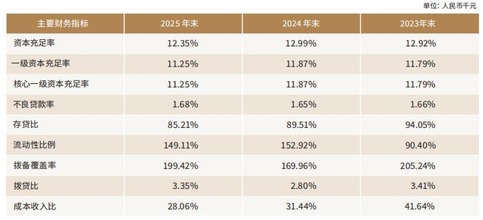 2025年末,华瑞银行资本充足率为12.35%,上年末为12.99%;一级资本充足率为11.25%,上年末为11.87%;核心一级资本充足率为11.25%,上年末为11.87%。