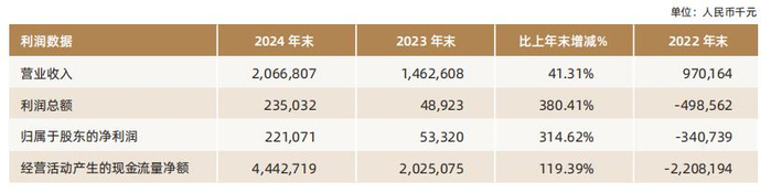 2024年,华瑞银行实现营业收入20.67亿元,同比增长41.31%;归属于股东的净利润2.21亿元,同比增长314.62%。