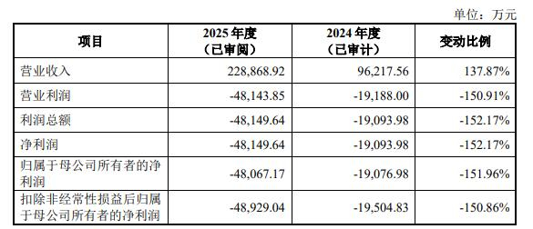 2025年,大普微营业收入为228,868.92万元,同比增长137.87%;净利润-48,149.64万元;归属于母公司所有者的净利润-48,067.17万元;扣除非经常性损益后归属于母公司所有者的净利润-48,929.04万元。