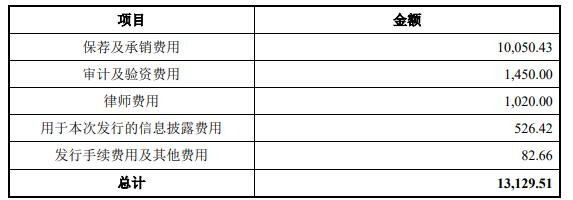 本次公司公开发行新股的发行费用合计13,129.51万元(不含增值税),其中保荐及承销费用10,050.43万元。