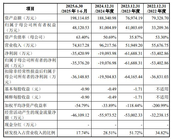 2022年、2023年、2024年、2025年1-6月,大普微营业收入分别为55,676.75万元、51,949.20万元、96,217.56万元、74,817.28万元;净利润分别为-53,402.86万元、-61,688.31万元、-19,093.98万元、-35,420.99万元;归属于母公司所有者的净利润分别为-53,402.86万元、-61,688.31万元、-19,076.98万元、-35,376.20万元;扣除非经常性损益后归属于母公司所有者的净利润分别为-36,831.03万元、-64,165.44万元、-19,504.83万元、-36,148.85万元。