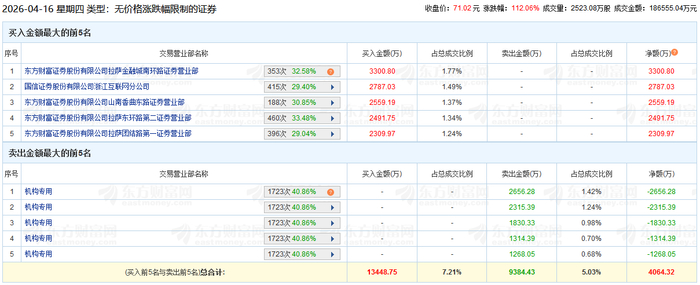 龙虎榜数据显示,卖出埃泰克金额最大的前5名中,全部为机构专用席位。经统计,机构席位今日卖出埃泰克净额为9384.43万元。