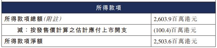 长光辰芯的发售价为39.88港元,所得款项总额为2,603.9百万港元,扣除按发售价计算之估计应付上市开支100.4百万港元,所得款项净额为2,503.6百万港元。