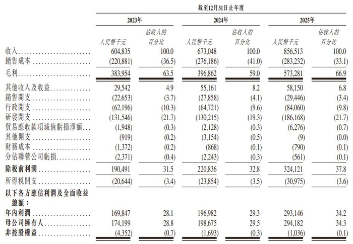 2023年、2024年、2025年,长光辰芯的收入分别为6.05亿元、6.73亿元、8.57亿元;净利润分别为1.70亿元、1.97亿元、2.93亿元。