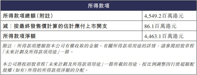 华勤技术本次发行的最终发售价为77.70港元,所得款项总额为4,549.2百万港元,扣除按最终发售价计算的估计应付上市开支86.1百万港元后,所得款项净额为4,463.1百万港元。