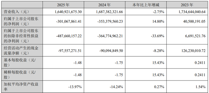 2024年,公司实现营业收入16.87亿元,同比下降2.72%;归属于上市公司股东的净利润-3.53亿元,上年同期为4050.02万元;归属于上市公司股东的扣除非经常性损益的净利润-3.65亿元,上年同期为669.15万元;经营活动产生的现金流量净额-9009.48万元,上年同期为1.26亿元。
