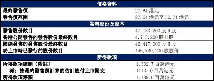 迈威生物本次发行的最终发售价为27.64港元,所得款项总额为1,302.7百万港元,扣除按最终发售价计算的估计应付上市开支113.6百万港元后,所得款项净额为1,189.0 百万港元。
