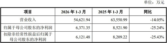 2026年1-3月,理奇智能实现营业收入54,621.94万元,较上年同期下降14.05%;归属于发行人股东的净利润为6,371.35万元,较上年同期下降25.24%;扣除非经常性损益后归属于公司股东的净利润为6,121.48万元,较上年同期下降25.43%;经营活动产生的现金流量净额为9,625.87万元。