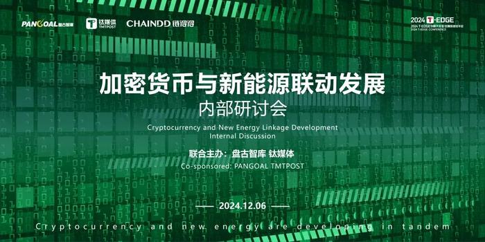 12月6日,盘古智库与钛媒体、链得得联合举办“加密货币与新能源联动发展内部”研讨会。当天,钛媒体集团在北京大兴区举办“2024 T-EDGE创新大会暨钛媒体财经年会”,盘古智库作为合作伙伴单位参与此次年会,本次内部研讨会也作为大会分论坛在盘古智库总部同步举行。