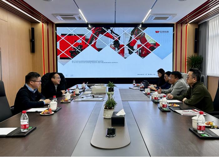 在万宇科技创始人、哈工大博导万龙的陪同下,调研组先后参观生产车间和公司各种特色主打产品。在随后的座谈交流中,公司执行总经理童志祥博士详细介绍了公司搅拌焊接的关键技术、市场占有率、技术核心团队建设及未来发展愿景等。