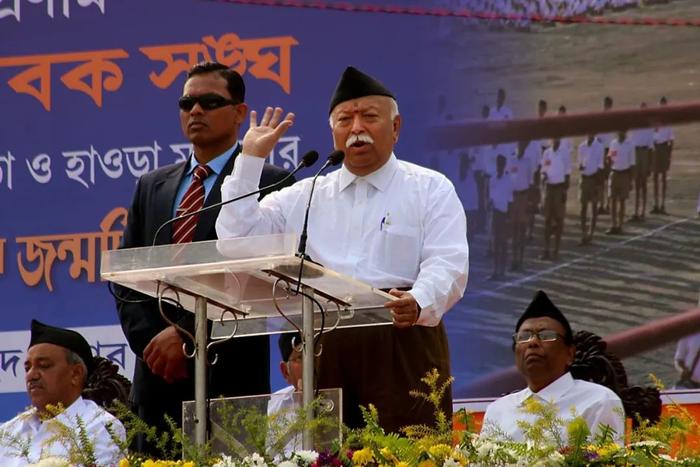 2023年1月23日,国民志愿服务团现任最高领袖巴格瓦特在印度西孟加拉邦首府加尔各答举行的内部集会上发表讲话。