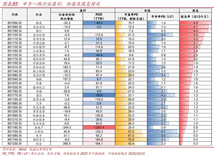 >金融:提升直接融资比重的直接受益者。资本市场改革深化、注册制完善、股权融资需求提升,将带动投行、经纪、自营等业务扩容。金融机构在高股息的基础上,将体现出政策红利与业务量扩张的双重收益。