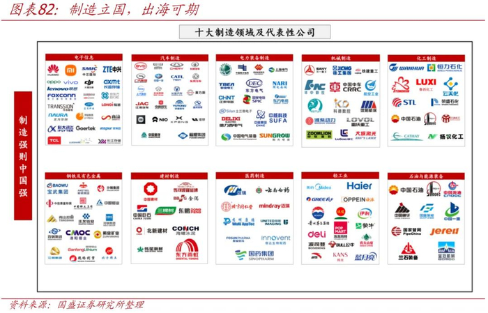 2、产业基础扎实、产品多点开花。得益于全门类工业体系和位于全球供应链的枢纽环节,中国制造的突出优势独一无二,占全球制造业比重超过30%,在家电、家具、纺织服装、新能源设备、新能源、装备制造等诸多领域已经排名全球前列,近年来产业竞争力显著提升,成为我国应对外部不确定性的重要基础。产品端也有突破,Labubu、《哪吒2》等消费品成为中国输出的全球IP,在全球范围内广受好评,DeepSeek、人形机器人、新凯莱半导体设备、华为鸿蒙系统等科技类产品业也全面崛起。全球的产业领先地位需要伟大公司建构,而伟大公司需要伟大产品成就,未来将有越来越多的中国产品和中国企业在全球获得更大的影响力。