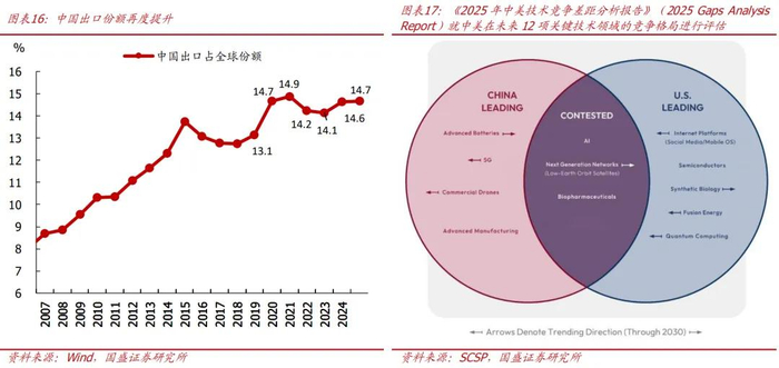 1、争夺新一轮产业浪潮制高点和领导权是关键。2025年1月,美国智库特别竞争研究计划(SCSP)发布报告《2025年中美技术竞争差距分析报告》(2025 Gaps Analysis Report),就中美在未来12项关键技术领域的竞争格局进行了系统性评估与比较研究,所谓“得产业者得未来”,特朗普政府深谙此道,推动“去风险化”、“重返制造业”、“毒丸条款”等措施来帮助美国锻长板、补短板。同样,我国“十五五”规划建议稿件明确要求“培育壮大新兴产业和未来产业”,要“加快新能源、新材料、航空航天、低空经济等战略性新兴产业集群发展,前瞻布局未来产业,探索多元技术路线、典型应用场景、可行商业模式、市场监管规则,推动量子科技、生物制造、氢能和核聚变能、脑机接口、具身智能、6G等成为新的经济增长点”。