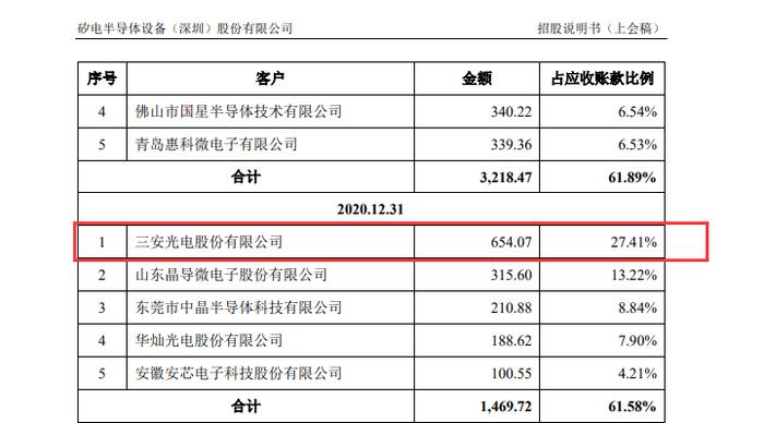 招股书显示,报告期内,矽电股份 LED 芯片行业的前五大客户依次为三安光电、华灿光电(300323)、兆驰股份、乾照光电(300102)和澳洋顺昌(002245)。
