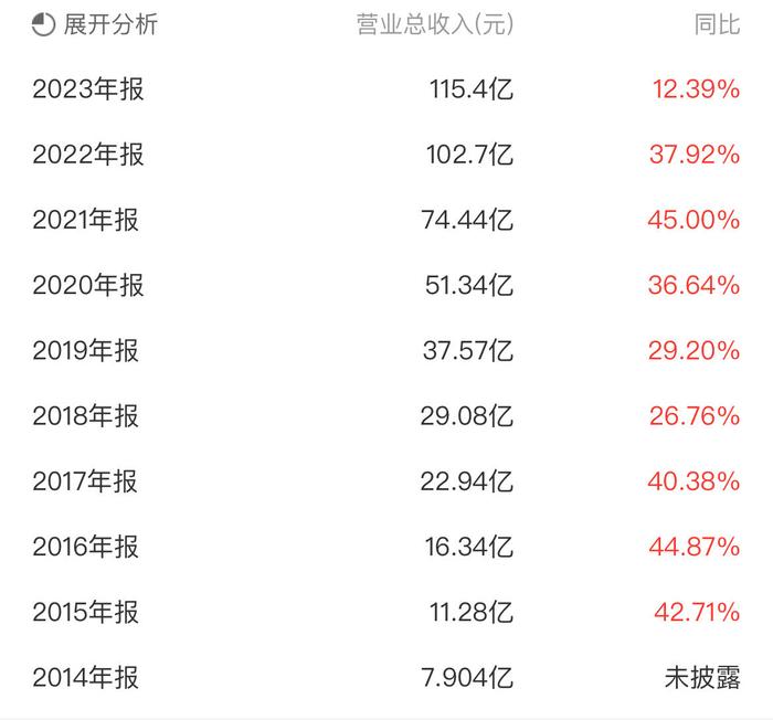 报告期内,康龙化成营收为115.38亿元,同比增长12.39%。值得注意的是,这一营收增长率为其自2015年发布年报以来的最低点,也是近9年来首次,其营收增长率下滑至了20%以下。