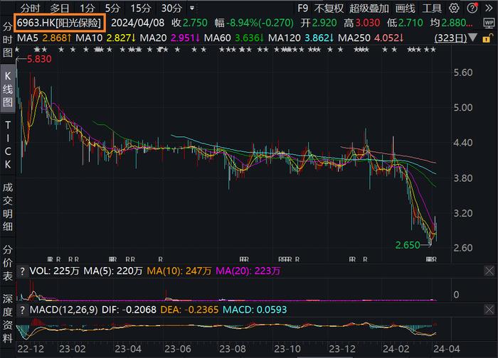 4月8日收盘,阳光保险以下跌8.94%报收2.75港元,刚刚反弹没几日的行情似乎又要结束了。