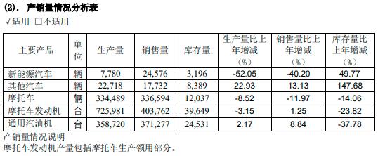 摩托车及其配件销售收入为20.33亿元,同比下降4.37%,毛利率为12.74%,主营利润为2.59亿元。在乘用车板块亏损的背景下,摩托车板块成为公司利润的重要来源。
