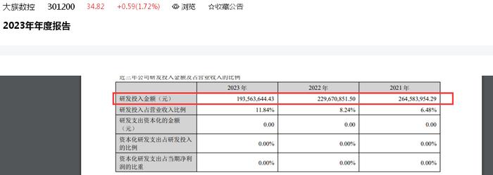公开数据显示,2021年-2023年,大族数控的研发投入金额不断下滑,分别录得:2.65亿元、2.30亿元、1.94亿元。