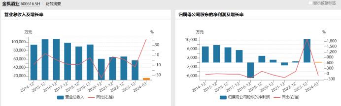 薪酬的增长并没有刺激公司业绩的增长,进入到2024年一季度,金枫酒业的业绩还是没有改变。
