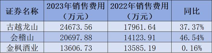 对于销售费用的增长,古越龙山的解释是“广告及业务宣传费等增加所致”,会稽山的解释是“销售人员职工薪酬及广告宣传促销费用投入增加所致”,而金枫酒业没有解释。