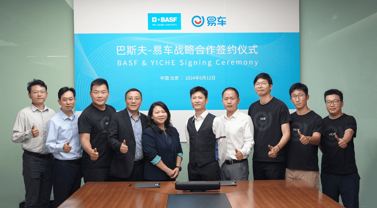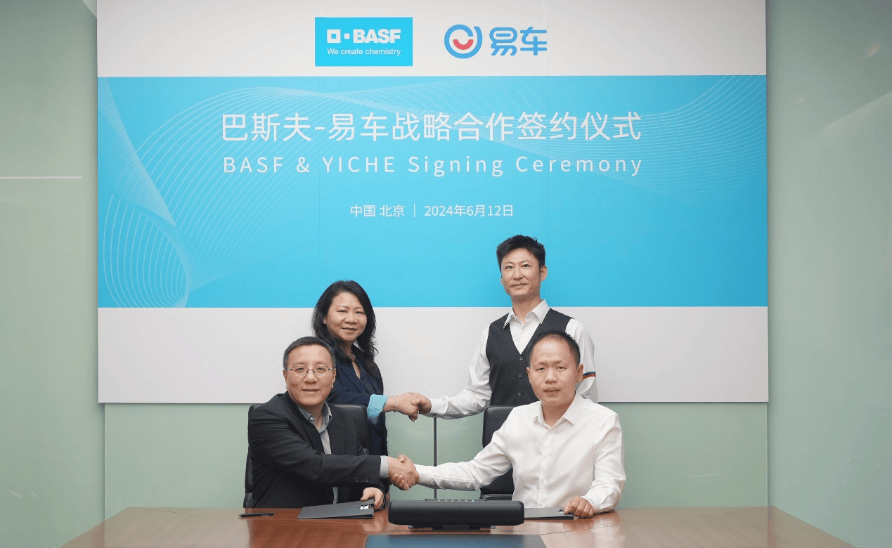 6 月 12 日,在易车公司北京总部,中国汽车互联网垂直领域的头部企业易车,与全球最大的化工企业之一巴斯夫签署了战略合作协议。