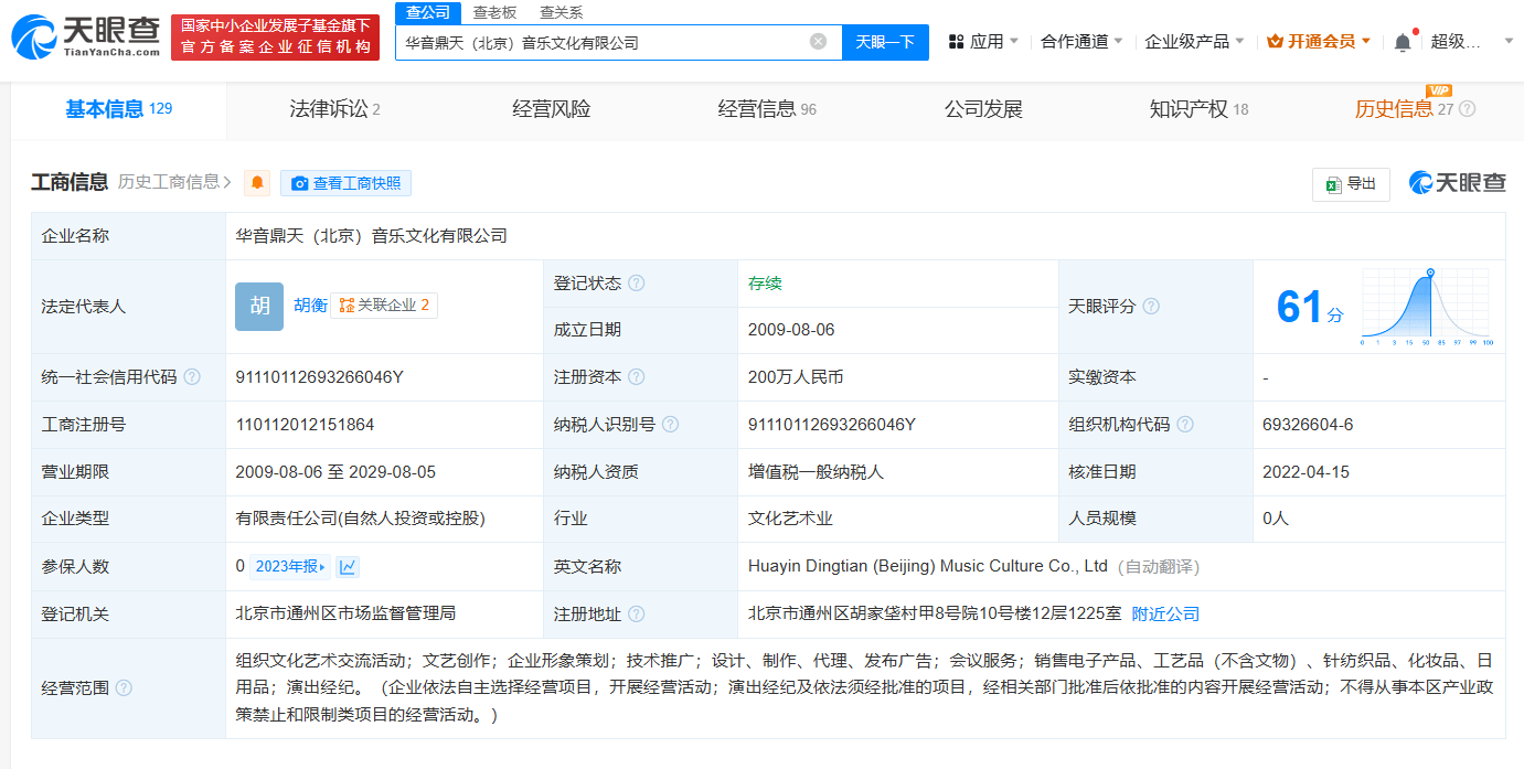 此外,李行亮持有华音鼎天(北京)音乐文化有限公司15%股份,该公司为李行亮经纪公司,麦琳并未在该公司持股或任职。