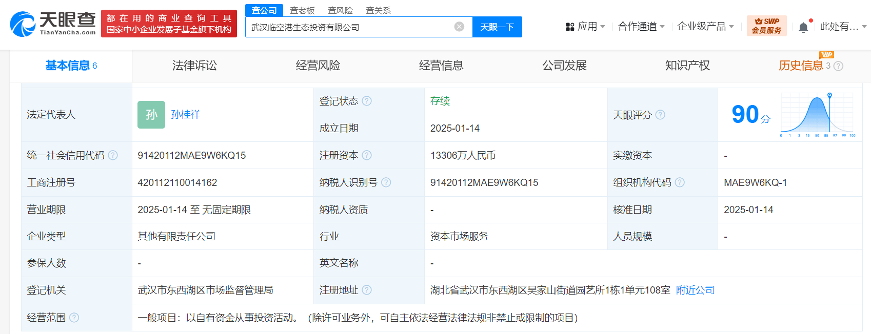 天眼查App显示,近日,武汉临空港生态投资有限公司成立,法定代表人为孙桂祥,注册资本约1.3亿人民币,经营范围为以自有资金从事投资活动。股东信息显示,该公司由武汉临空港资本投资有限公司、武汉临空港生态园林绿化有限公司共同持股。