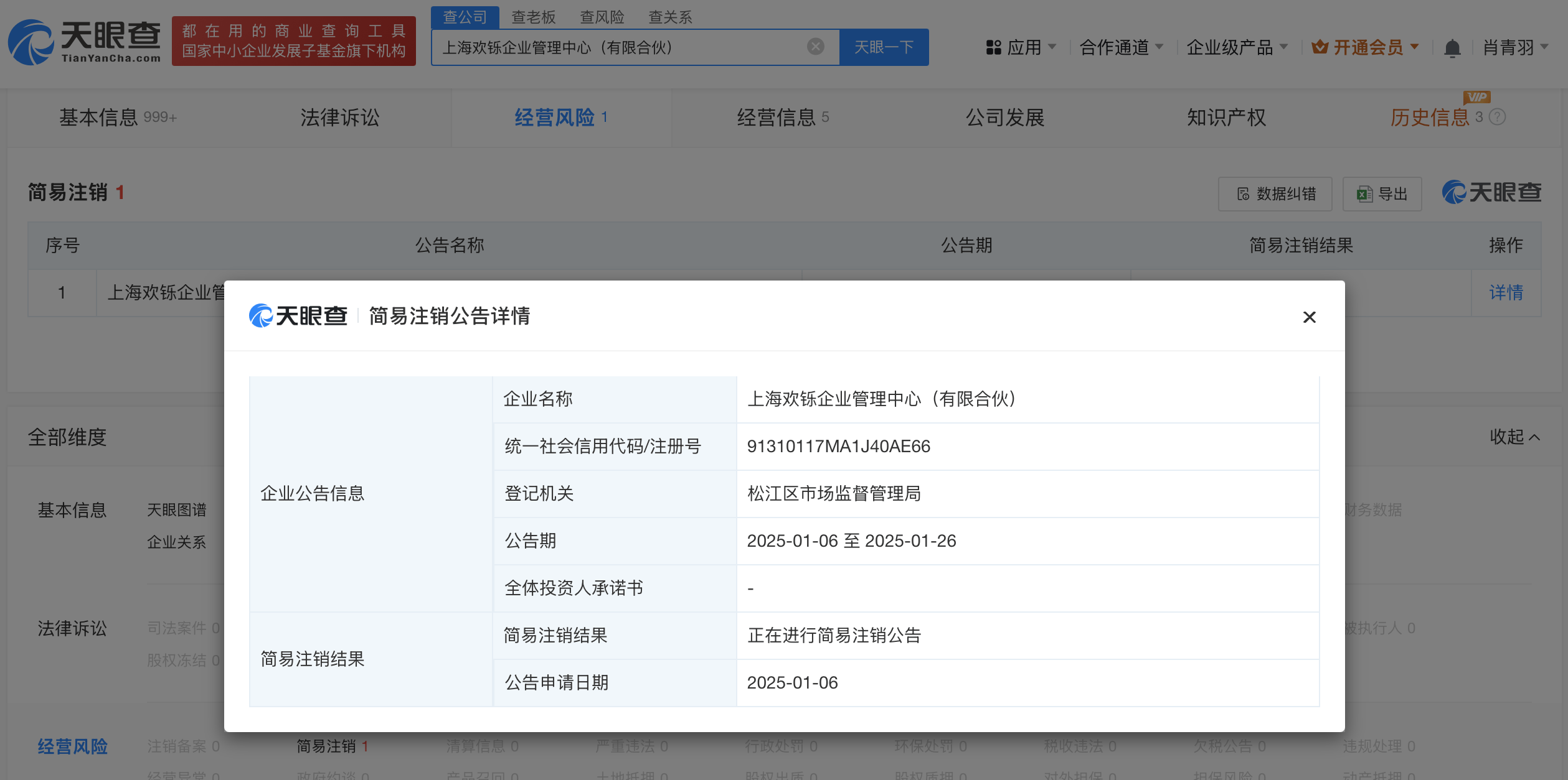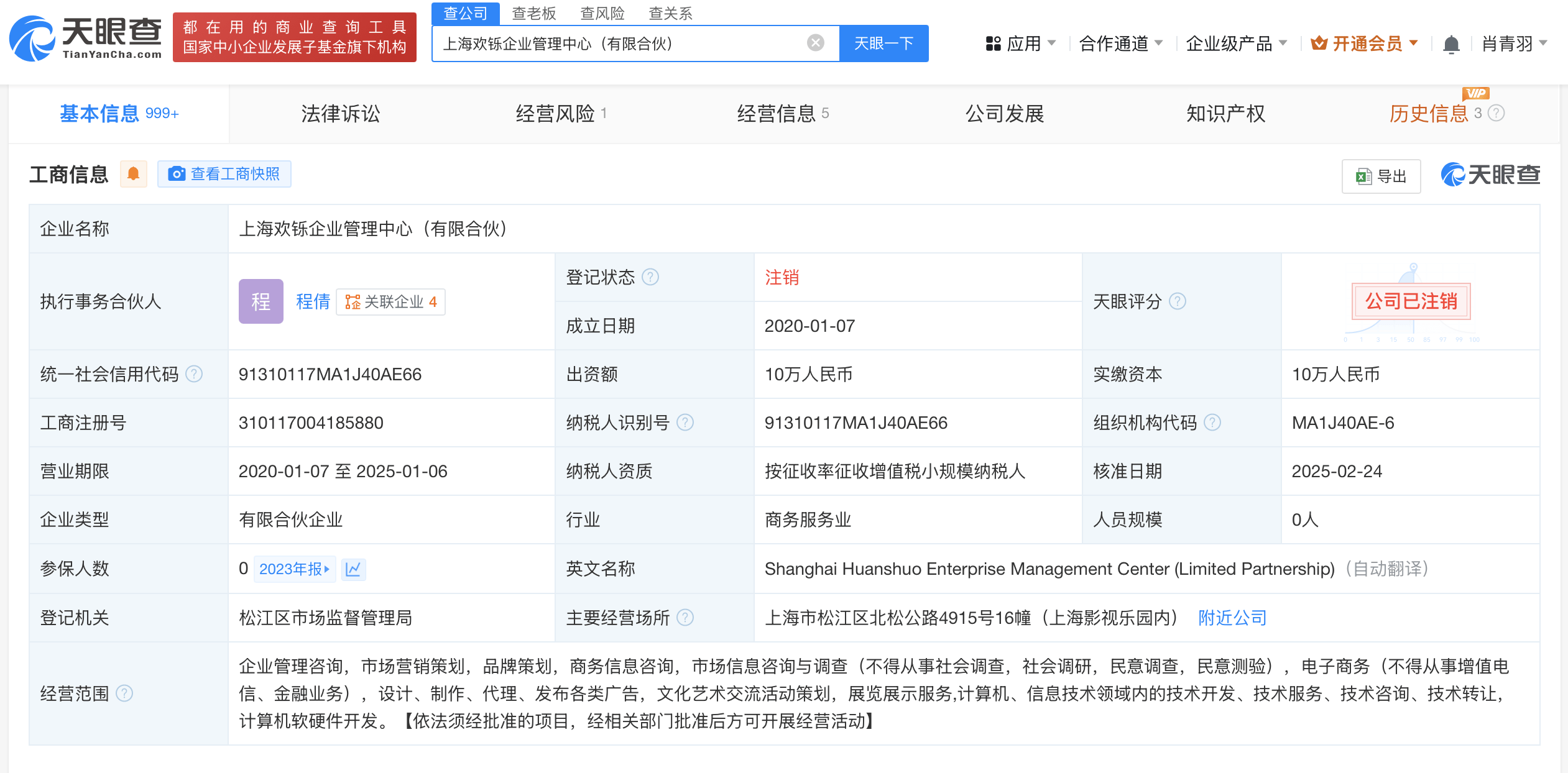 天眼查App显示,近日,上海欢铄企业管理中心(有限合伙)企业状态由存续变更为注销。今年1月,该企业已发布简易注销公告。