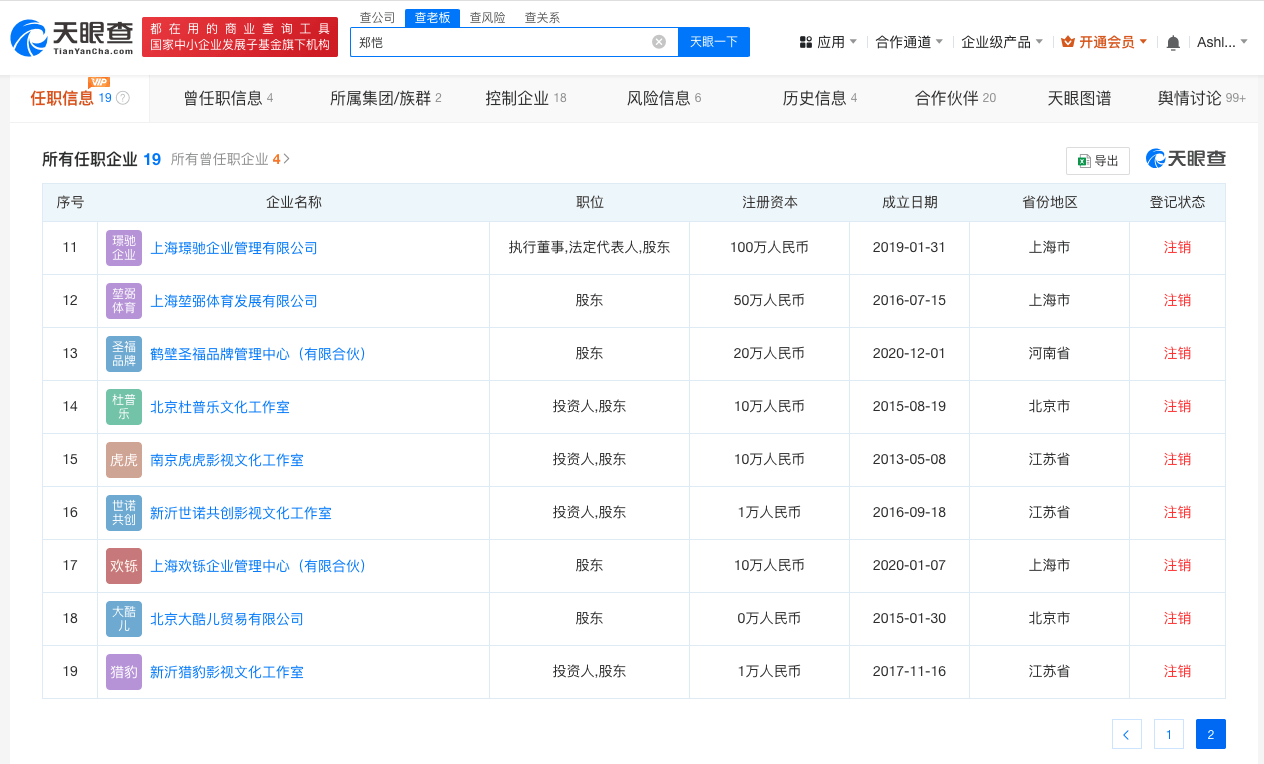 郑恺名下一企管企业注销 郑恺名下多家公司已注销