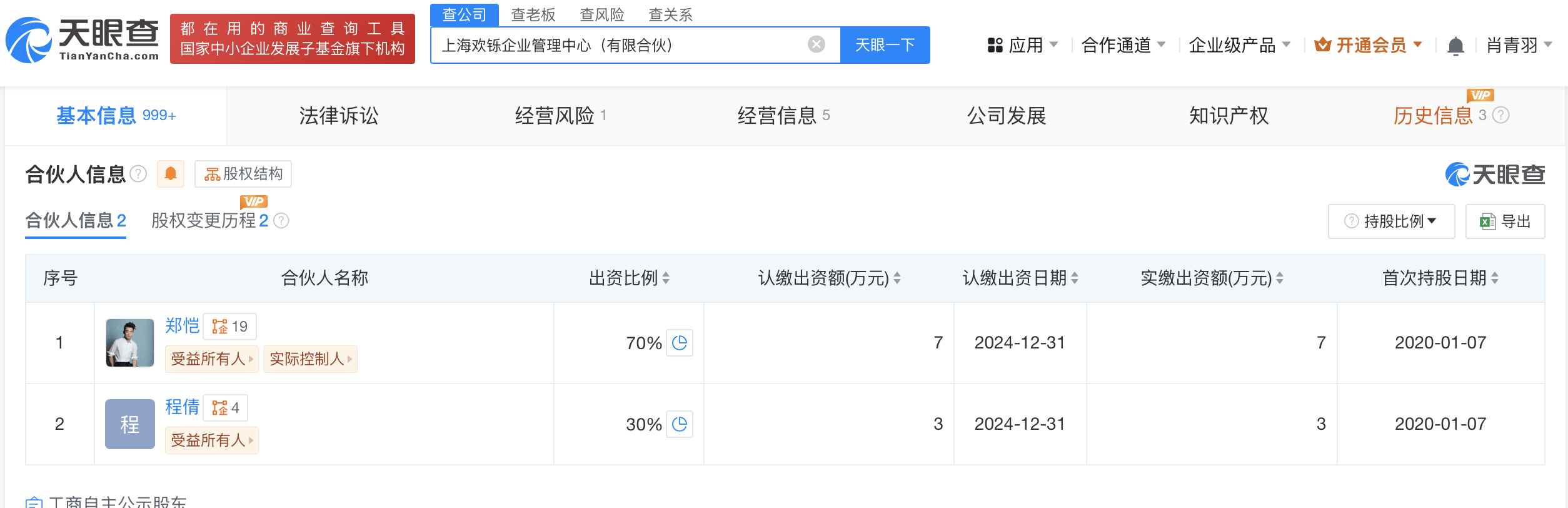 上海欢铄企业管理中心(有限合伙)成立于2020年1月,执行事务合伙人为程倩,出资额10万人民币,经营范围包括企业管理咨询、市场营销策划、品牌策划、商务信息咨询、市场信息咨询与调查等。合伙人信息显示,该企业由郑恺、程倩分别持股70%、30%。