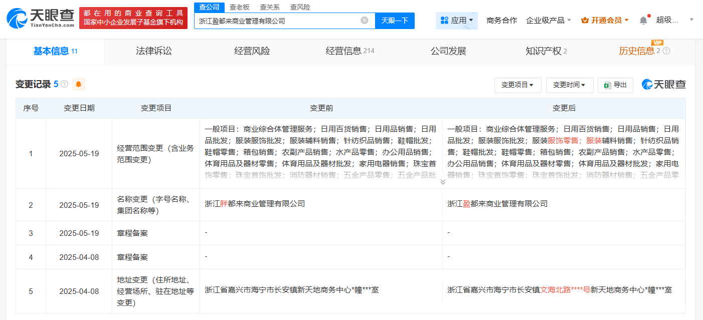 此前,“胖都来”商场开业,因商场名与河南“胖东来”相似,引发热议。5月19日,该商城更名已完成工商变更。值得注意的是,上述两枚“盼都来”商标也申请于5月19日。