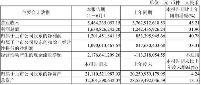 海光信息(688041)公布2025年半年度报告。根据披露,报告期内公司实现营业收入54.64亿元,较上年同期增长45.21%;实现归属于母公司所有者的净利润12.01亿元,较上年同期增长40.78%;实现归属于母公司所有者的扣除非经常性损益的净利润10.9亿元,较上年同期增长33.31%;实现每股收益0.52元,较上年同期增长40.54%。