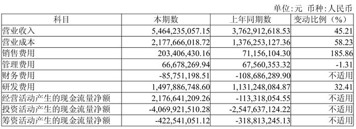 公司介绍称,营业收入同比实现较快增长,主要系报告期内国产高端芯片市场需求持续攀升,公司通过深化与整机厂商、生态伙伴在重点行业和重点领域的合作,加速在客户端的导入,推动公司高端处理器产品的市场版图扩展,实现了公司营业收入的显著增长。利润总额、归属于上市公司股东的净利润、归属于上市公司股东的扣除非经常性损益的净利润实现较快增长,主要系营业收入增长带来主营业务利润增长。经营活动产生的现金流量净额同比增加较大,主要系公司业务增长较快,销售回款及预收货款增加所致。基本每股收益、稀释每股收益、扣除非经常性损益后的基本每股收益,较上年同期大幅上升,主要得益于公司产品的市场销售大幅提升,收入和利润显著增长,带动每股盈利水平整体提升。公司持续加大研发投入力度,产品竞争力不断增强,研发投入同比增长25%, 由于营业收入增幅高于研发投入增长,使研发投入占营业收入比例同比有小幅下降。