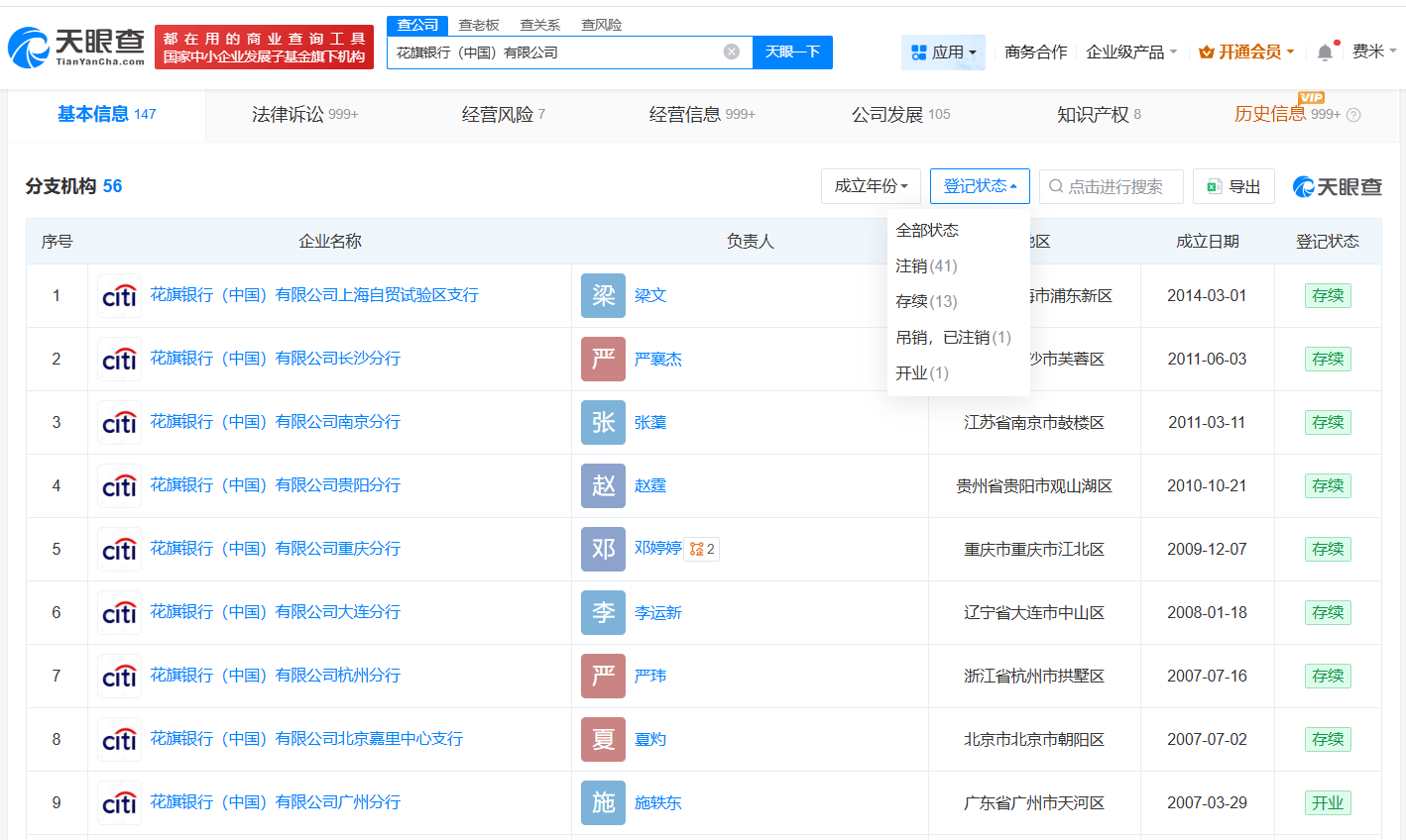 花旗中国42家分支机构已注销或吊销