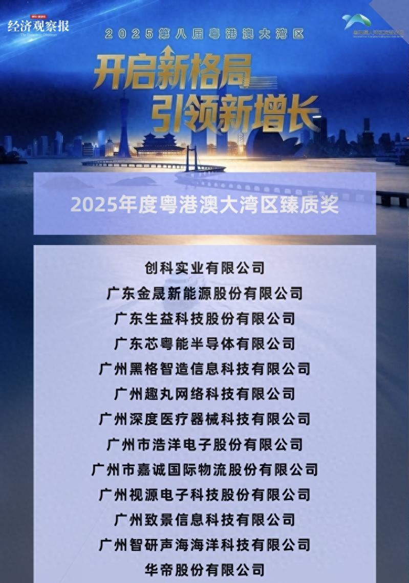 近日,由经济观察报主办的以“开启新格局 引领新增长”为主题的第八届粤港澳大湾区发展论坛顺利召开。论坛同期,“2025年粤港澳大湾区臻质奖”正式发布。基于在“优质运营、公众信赖、行业引领、创新突破、社会贡献、年度影响”六大维度的综合表现,华帝荣获“粤港澳大湾区臻质奖”,成为行业内唯一获得该荣誉的企业。