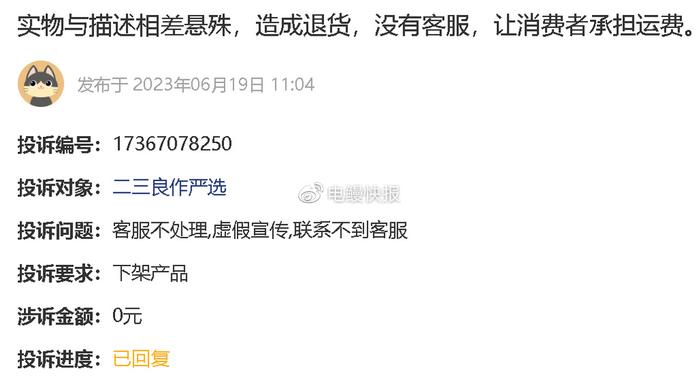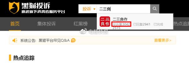《电鳗财经》关注到,仅在黑猫投诉[投诉入口]平台中关于“二三良作”的投诉就高达3000多起,其中与刘先生有类似经历的并非个例。