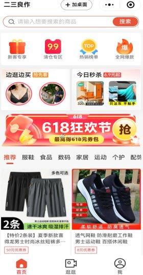 刘先生购物交易发生平台微信小程序主页显示为“二三良作”