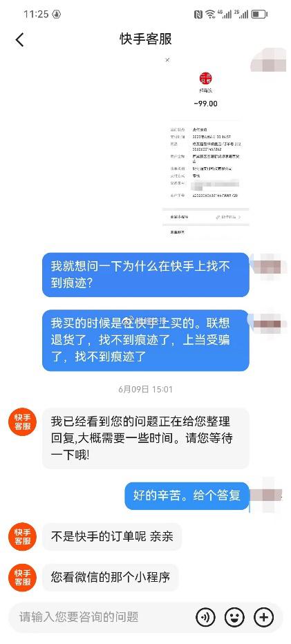 刘先生与“快手客服”沟通记录