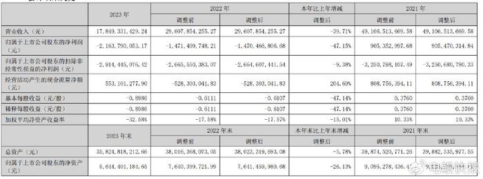 深康佳A发布的最新年报显示,2023 年,公司实现营业收入为 178.49 亿元,同比下降39.71%,实现归属于上市公司股东的净利润为-21.64 亿元,同比下降 47.15%。