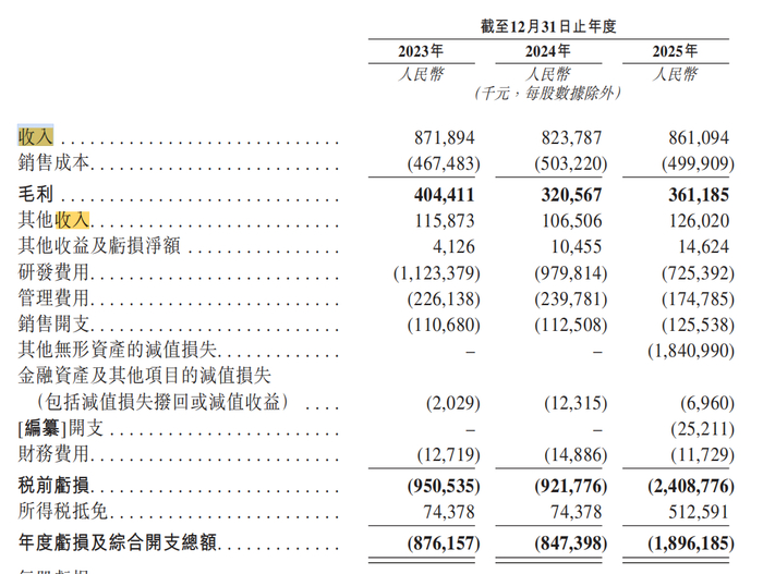 从2023年至2025年(以下简称报告期),斑马智能实现营业收入分别为8.72亿元、8.24亿元、8.61亿元,2024年出现下降,2025年虽然恢复性增长,但仍然不及2023年。报告期内,斑马智能实现的归母净利润分别为-8.76亿元、-8.47亿元、-18.96亿元,三年合计亏损36.19亿元。