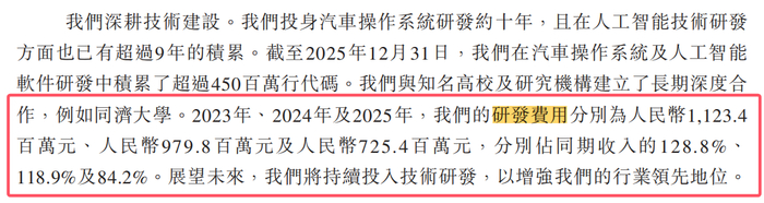 报告期内,斑马智能的研发费用分别为11.23亿元、9.80亿元及7.25亿元,分别占同期收入的128.8%、118.9%和84.2%,研发费用和研发费用率都呈下降趋势。