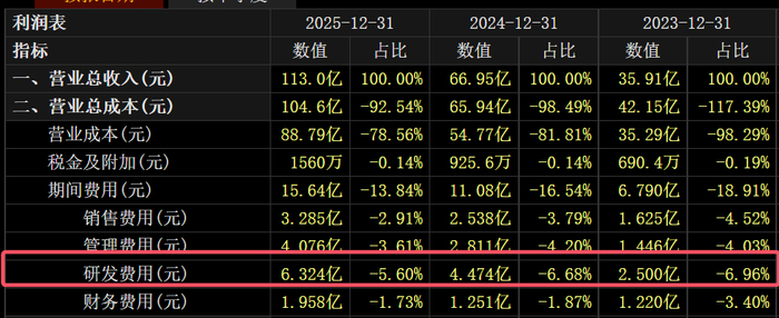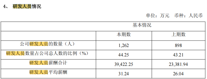 到2025年,该公司研发投入达到6.32亿元,期末研发人员数量为1262人。两年间,研发投入和人员数量分别增长152.80%、84.77%。