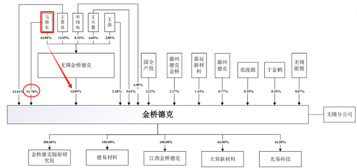 马晓东是金桥德克的控股股东、实际控制人,直接持有该公司51.78%的股份,并通过无锡金桥德克间接持股8.25%,马晓东直接和间接持有金桥德克60.03%股份。但马晓东未对无锡金桥德克形成控制,其控制的公司表决权比例为51.78%。