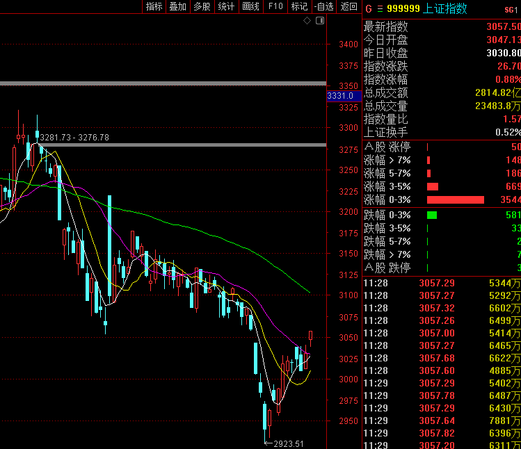 下午关注:大盘下方能否收在五周均线3035点之上?上方能否收在3058点前缺口之上?个股4547:623的悬殊涨多跌少局面能维系并扩大?成交量能否超过上周一(10月30日)的10381亿?