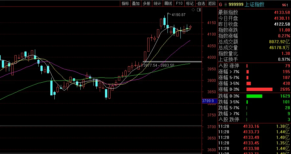 加上人民币升值到6.96元,央行实施宽松货币政策,2025年中国GDP总量超140万亿。这些都巩固了机构的基本盘的稳定,使管理层花九牛二虎之力,将大盘打压到4130-4090点强制盘整。连续7天后,今上午收盘终于站上4130点。