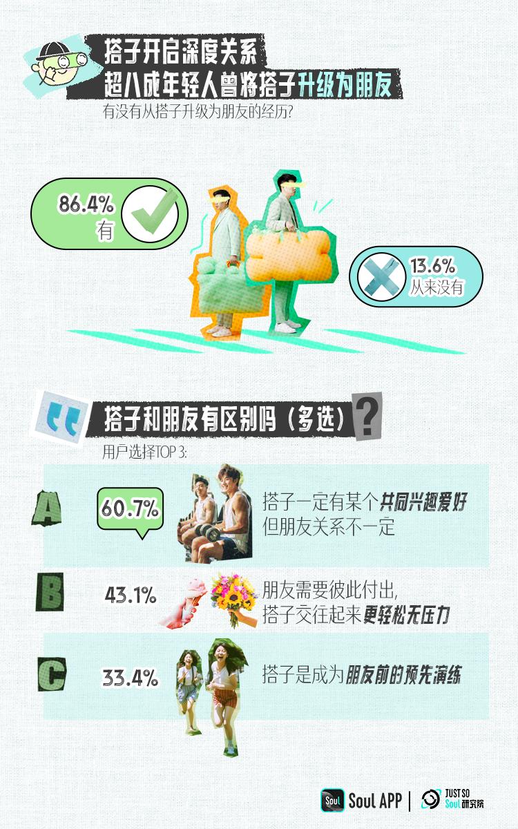 Soul发布《2023年轻人搭子社交报告》:每4个00后就有一人有“搭子”