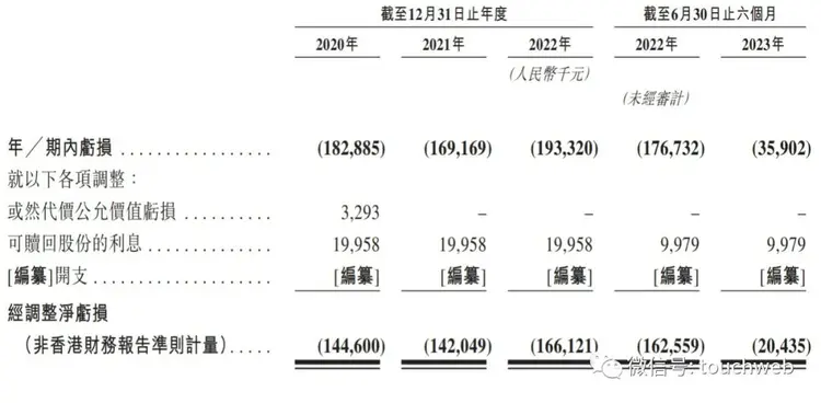白山云科技2020年、2021年、2022年经调整净亏损分别为1.45亿、1.42亿元、1.66亿元;白山云科技2023年上半年经调整净亏损为2044万元,上年同期的经调整亏损为1.63亿元。