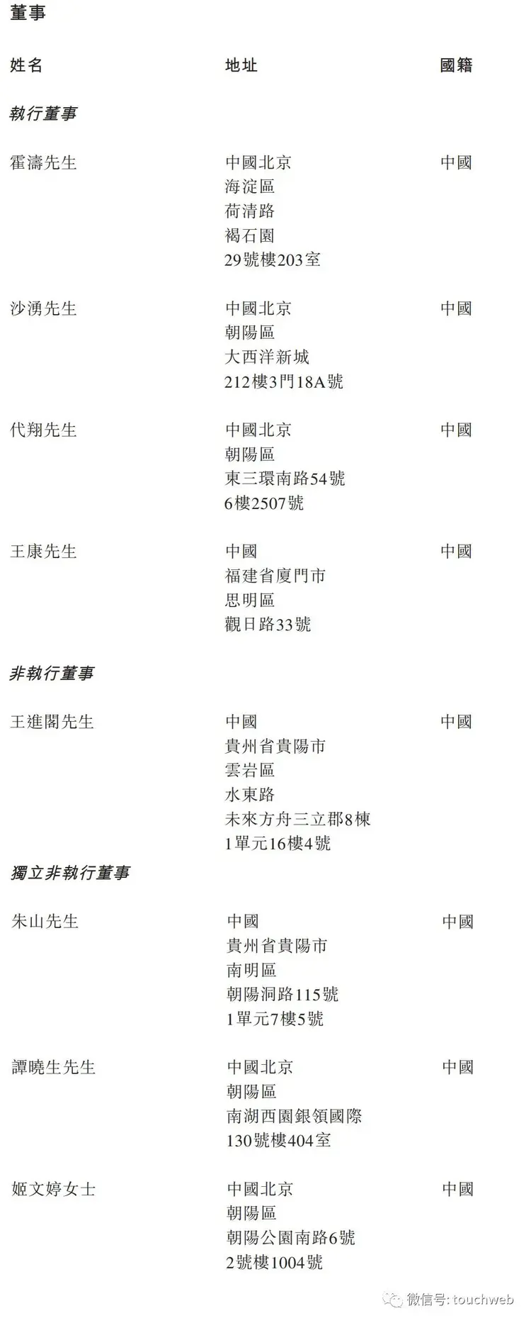 白山云科技执行董事分别为霍涛、沙涌、代翔、王康;非执行董事分别为王进阁、徐俊;独立非执行董事分别为朱山、谭晓生、姬文婷女士。