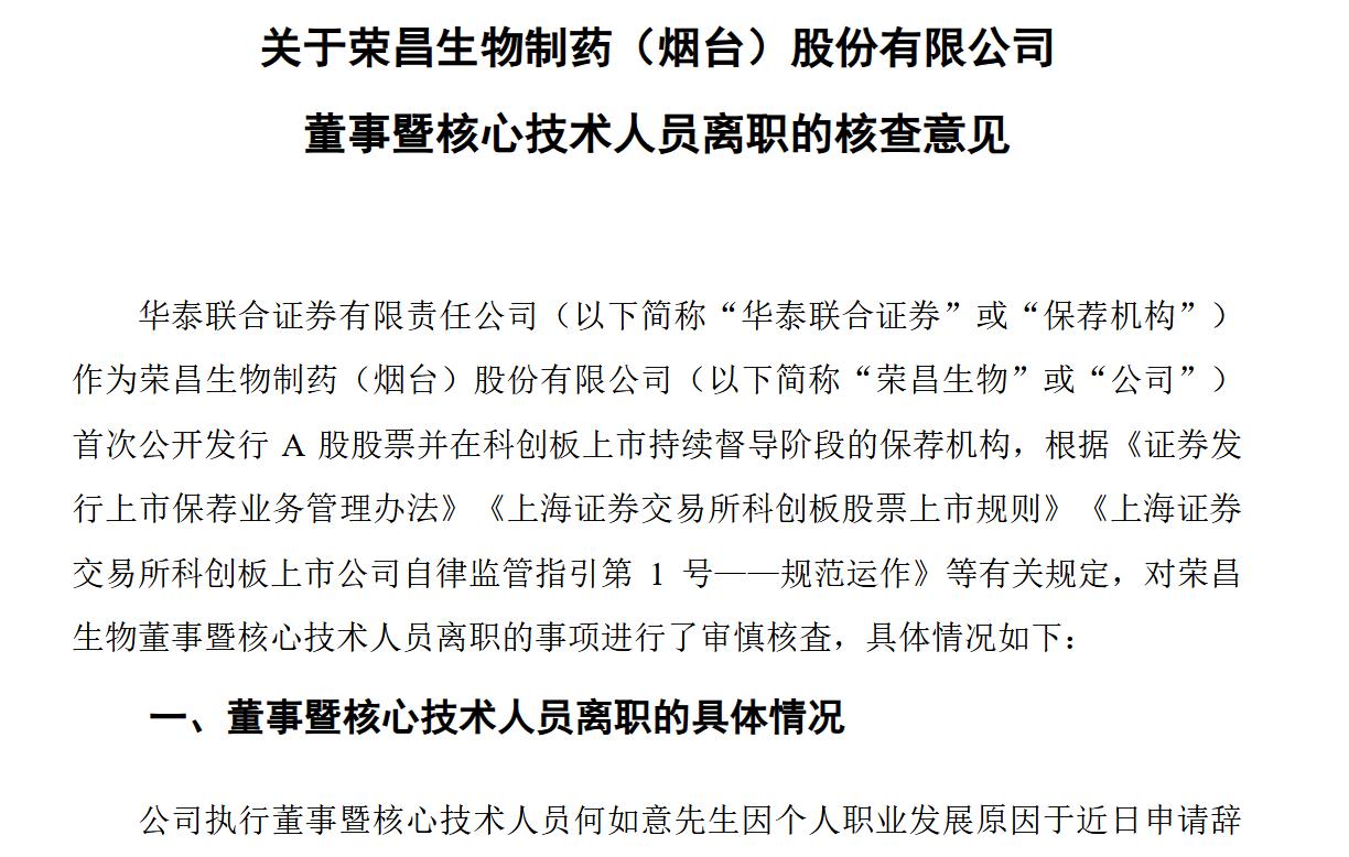 荣昌生物首席医学官何如意离职 公司前景添变数